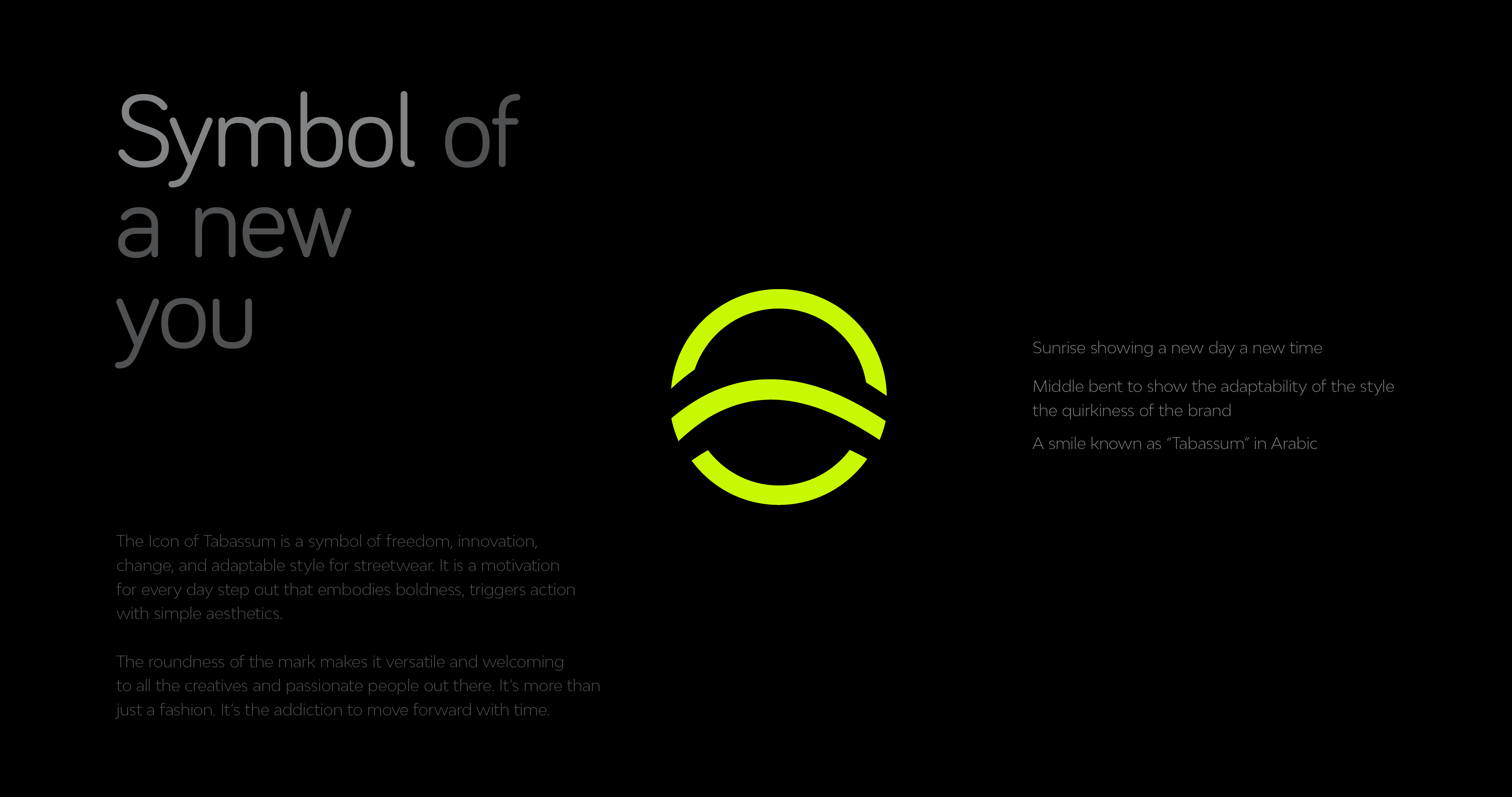 Tabassum is an Arabic name meaning “smile.” The challenge was to express this idea through a bold identity with a subtle sense of energy that moves away from fashion minimalism and predictable colour palettes. The brand embraces irony, combining dark aesthetics with creative freedom to create a visual language that feels expressive and confident.