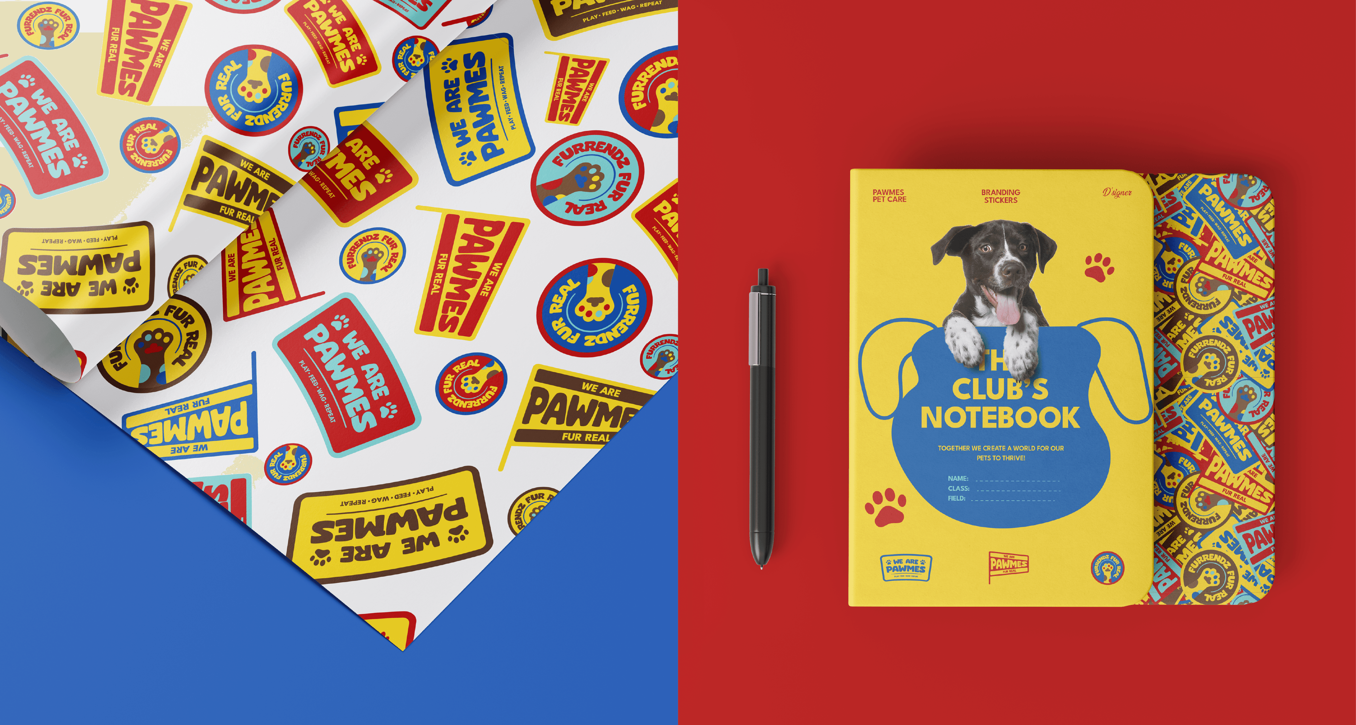 A pet care club that helps dogs and cats build their own world with their people. These stickers spread that message with every stick, welcoming more Pawmes into the club and creating a shared space for pets and pet lovers to connect.