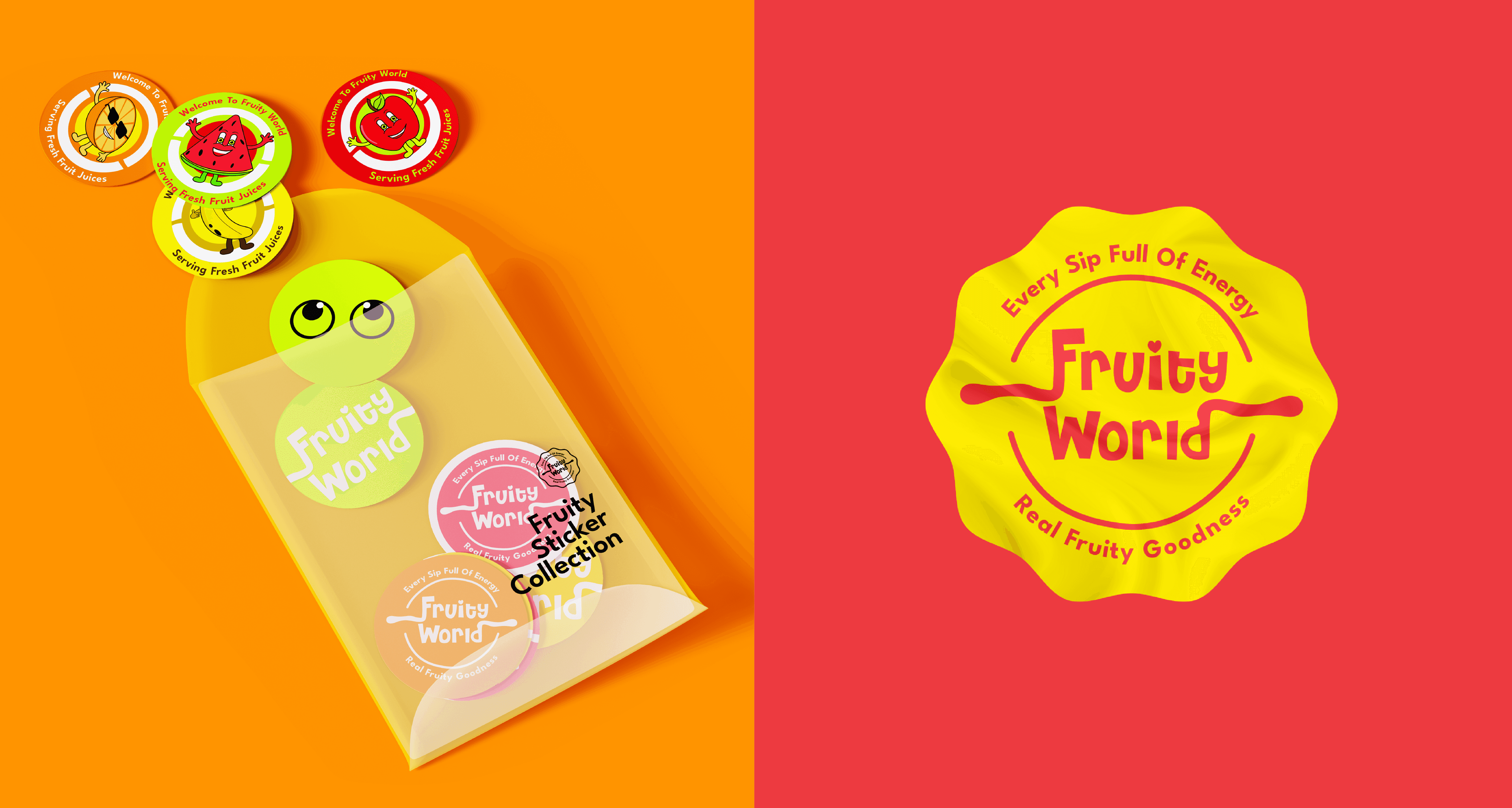 A fruit juice bar offering fresh juices, smoothies, and shakes that cool the summer while promoting health in a fun way. Designed especially for kids who often choose junk snacks over fruits, these stickers help connect with them and gently encourage healthier choices through playful visuals.